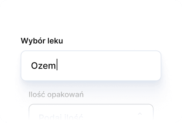 Jeśli wybierzesz "Samodzielnie chcę wybrać lek", wpisujesz w polu nazwę leku, o który wnioskujesz. Lekarz oceni, czy jest dla Ciebie wskazany i bezpieczny - może zaakceptować, zaproponować alternatywę albo odmówić, jeśli są przeciwwskazania.